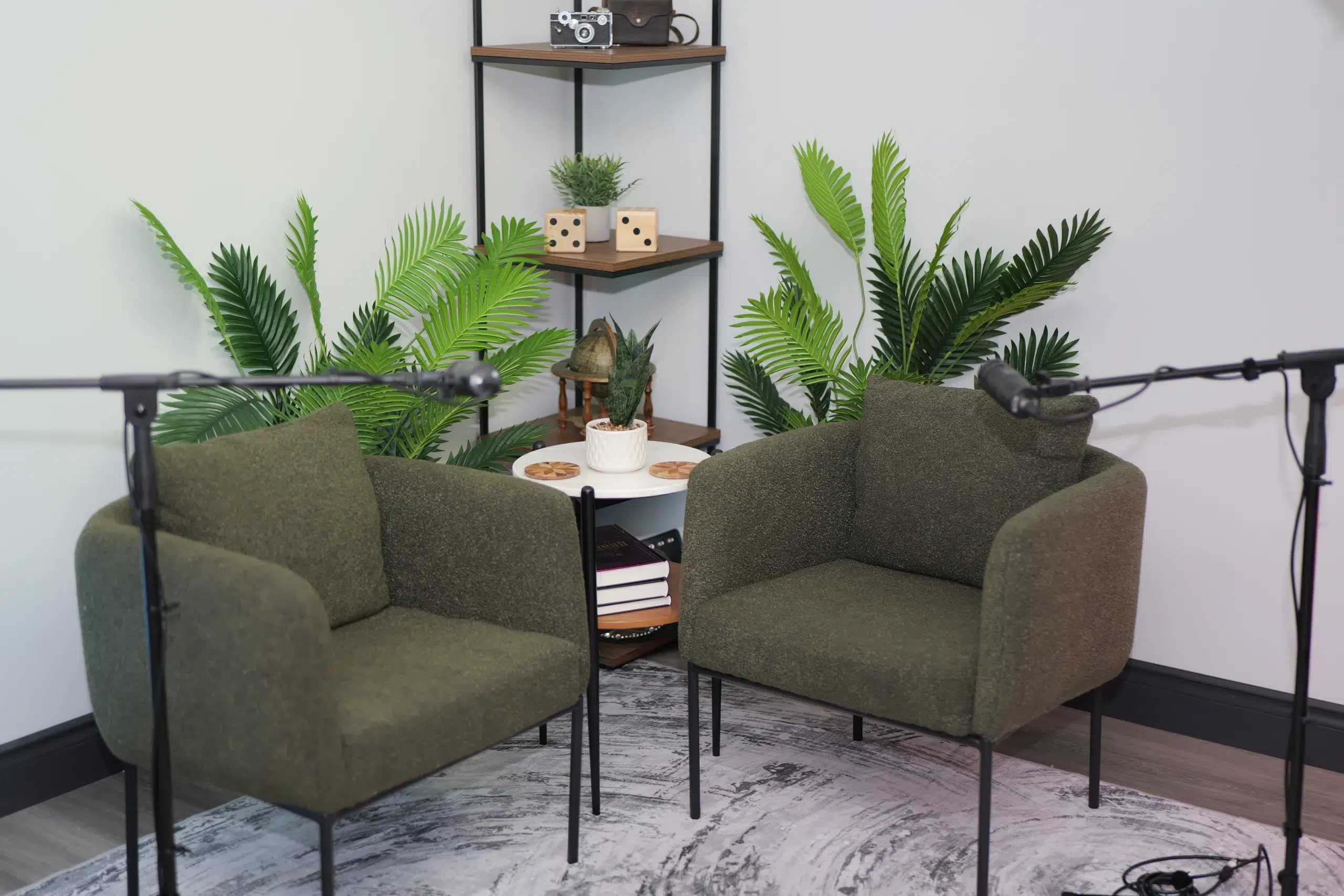 Shoot your next batch of content at the Corner Suite, a minimalist 2-person set perfect for solo creators, coaches, and thought leaders who want pro-level footage without paying for editing.